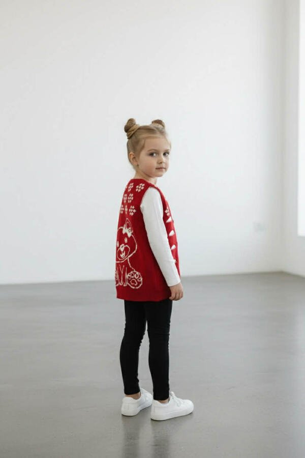 Παιδικό πλεκτό γιλέκο , κατάλληλο για όλες τις εποχές. Σχεδιασμένο σε διπλής όψης στιλ, ώστε να φοριέται και από τις δύο πλευρές, προσφέροντας δύο διαφορετικές εμφανίσεις σε ένα κομμάτι.