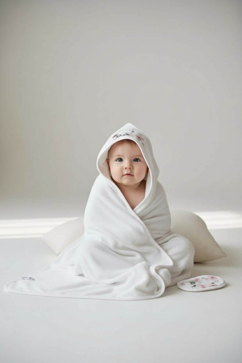 Η βρεφική πετσέτα με κουκούλα είναι σχεδιασμένη για απαλό και άνετο στέγνωμα μετά το μπάνιο.