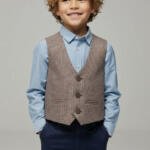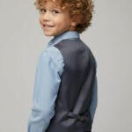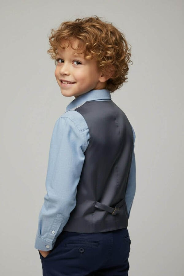 Κομψό, κλασικό γιλέκο για αγόρι που ολοκληρώνει κάθε επίσημο σύνολο. Μπροστινή πλευρά από υφαντό ύφασμα και πίσω πλευρά με σατέν επένδυση/σατέν όψη. Διαθέτει ρυθμιζόμενη αγκράφα στο πίσω μέρος για τέλεια εφαρμογή (στένεμα/άνοιγμα). Ιδανικό για βαπτίσεις, γάμους και γιορτές.