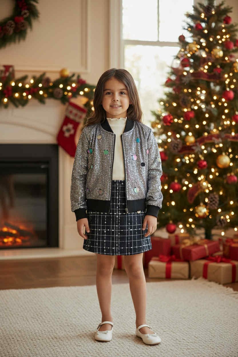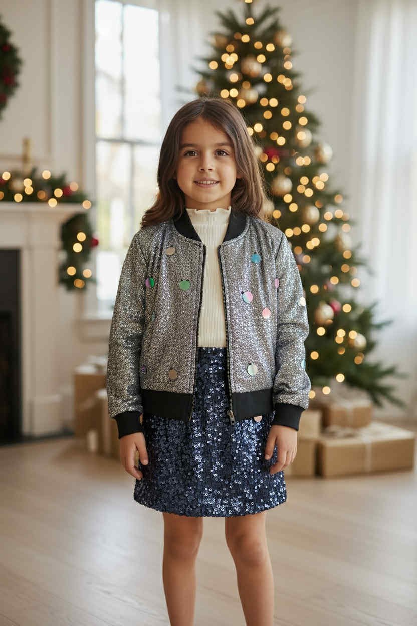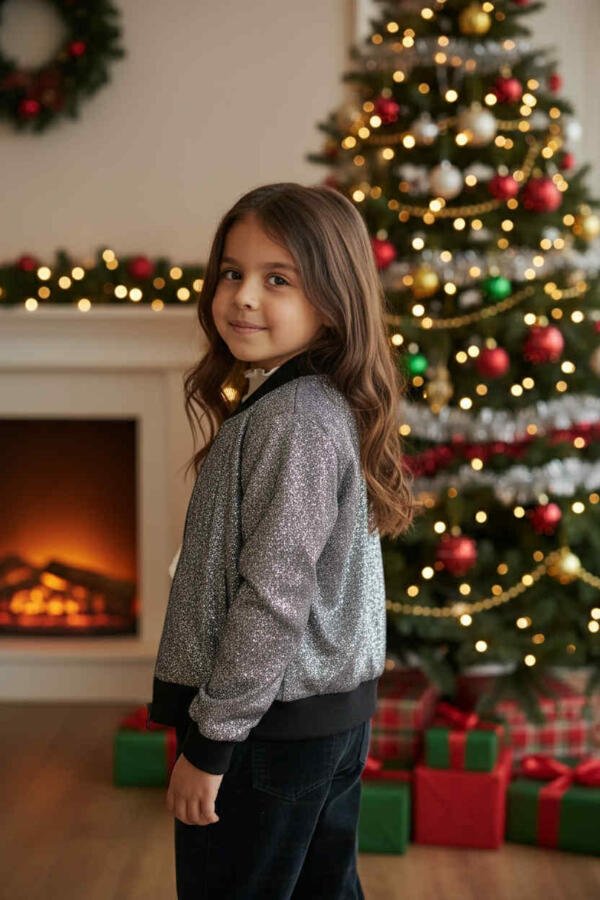 Κοριτσίστικο Σακάκι με Λάμψη και Παγιέτες – Ασημί