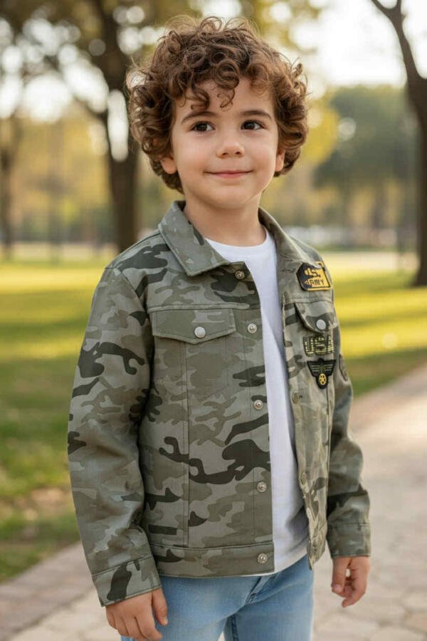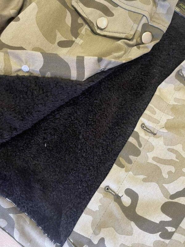 Το μπουφάν είναι πλήρως επενδεδυμένο με μαλλί στο στήθος, την πλάτη και τα μανίκια. Το εξωτερικό του μέρος έχει στρατιωτικό σχέδιο με εμβλήματα.
