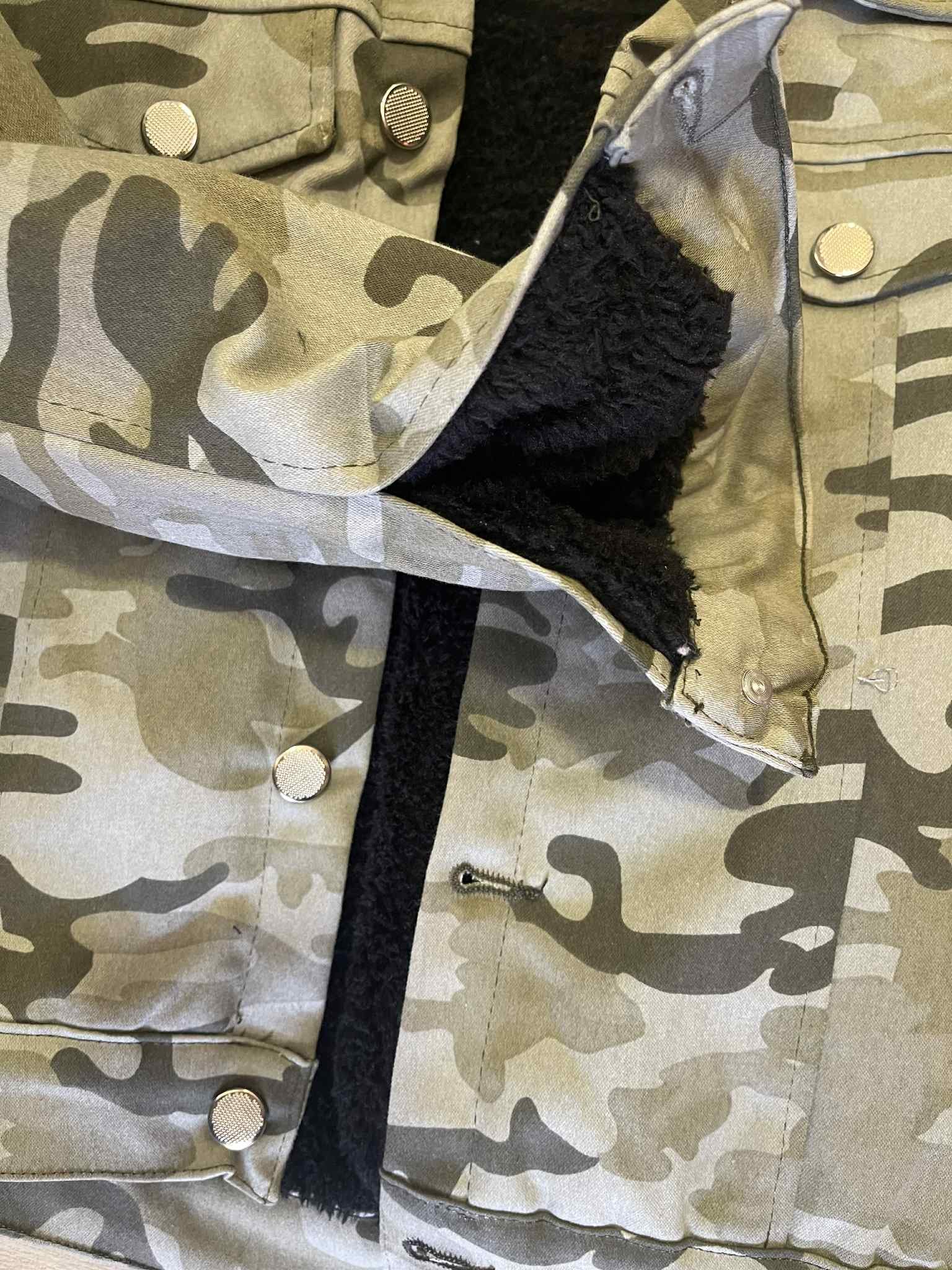 Το μπουφάν είναι πλήρως επενδεδυμένο με μαλλί στο στήθος, την πλάτη και τα μανίκια. Το εξωτερικό του μέρος έχει στρατιωτικό σχέδιο με εμβλήματα.