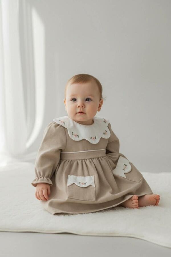 Κομψό βρεφικό φόρεμα από ύφασμα λινό-βαμβάκι, με βαμβακερή φόδρα για άνεση και φιλική αίσθηση στο δέρμα. Ξεχωρίζει με τον γιακά γκιπούρ και τις διακριτικές κεντητές λεπτομέρειες, ενώ το άνετο κόψιμο επιτρέπει ελευθερία κινήσεων. Ιδανική επιλογή για καθημερινές εμφανίσεις αλλά και για ιδιαίτερες περιστάσεις, όπως γιορτές, επισκέψεις και φωτογραφίσεις.