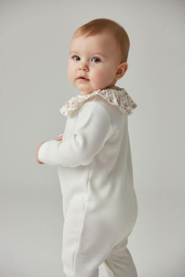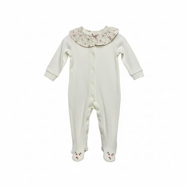 Οργανικό σετ βρεφικής φόρμας ολόσωμης από 100% βαμβάκι με μουσελίνα δαντελένιο γιακά & οργανικό μουσελίνα παιχνίδι ύπνου