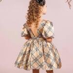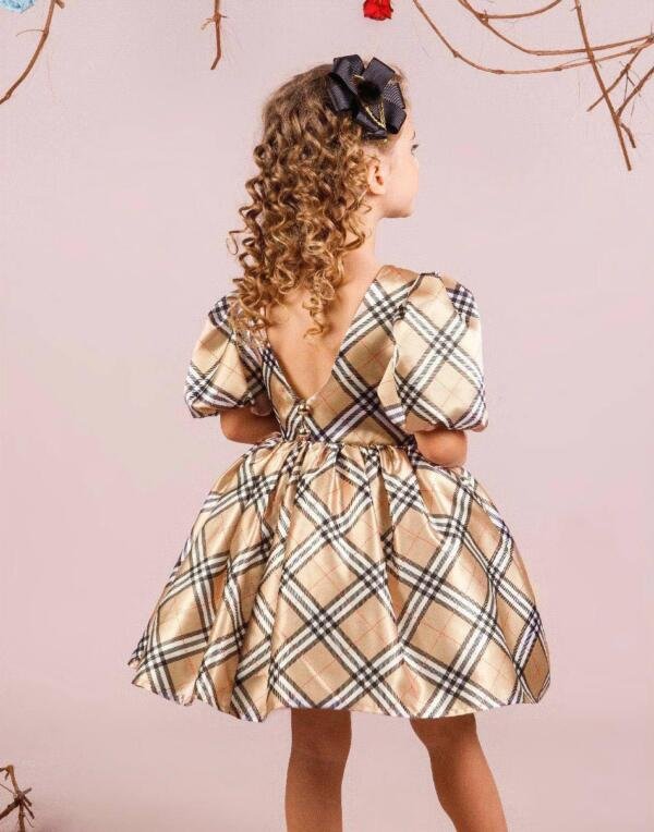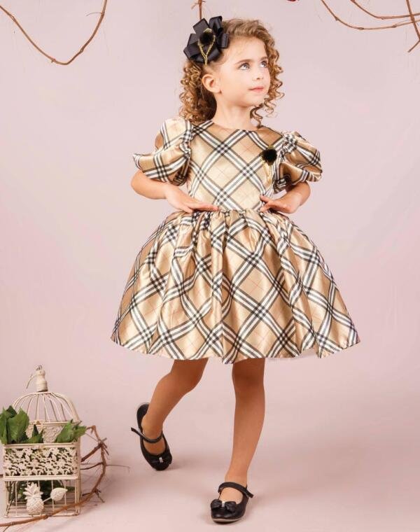 Φόρεμα από εισαγόμενο σατέν ύφασμα με καρό σχέδιο, με ένα στρώμα φουσκωτό τούλι κάτω από τη φούστα και μια στρώση βαμβακερής φόδρας κάτω από το τούλι. Αυτό το μπουτίκ φόρεμα είναι ιδανικό για ειδικές περιστάσεις και μπορεί να φορεθεί όλες τις εποχές.Η κορδέλα και το αξεσουάρ με τη μπόυρο στο γιακά περιλαμβάνονται στην τιμή του φορέματος.
