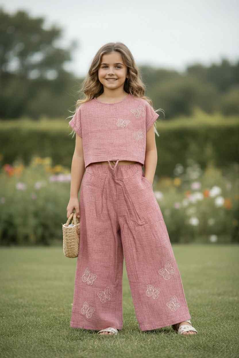 Κατασκευασμένο από λινό και μουσελίνα, αυτό το μοναδικό σετ είναι ιδανικό για κορίτσια, ειδικά για τις καλοκαιρινές μέρες. Μια υπέροχη επιλογή τόσο για ιδιαίτερες περιστάσεις όσο και για καθημερινή χρήση.