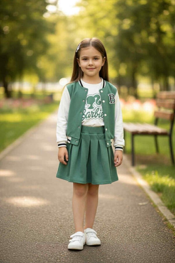 Barbie Σετ 3 τεμαχίων για κορίτσια – Ζακέτα, μακρυμάνικη μπλούζα και φούστα