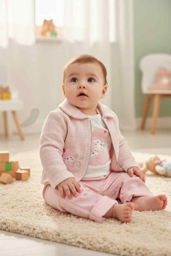 Σετ 3 τεμαχίων με μακρυμάνικη μπλούζα από 100% βαμβάκι με απαλή υφή, βαμβακερό παντελόνι και κοντό ζέρσεϊ μπολερό.
