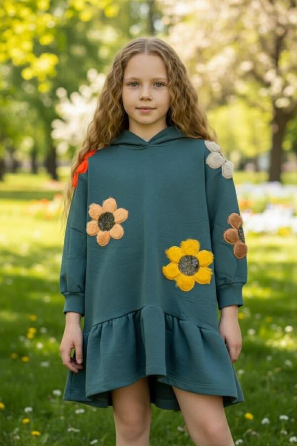 Φόρεμα από τη συλλογή Moonstar, κατασκευασμένο από 100% βαμβάκι, ιδανικό για άνετη και καθημερινή χρήση. Διαθέτει εντυπωσιακές κεντημένες λουλουδένιες λεπτομέρειες φτιαγμένες από παγιέτες και faux fur.