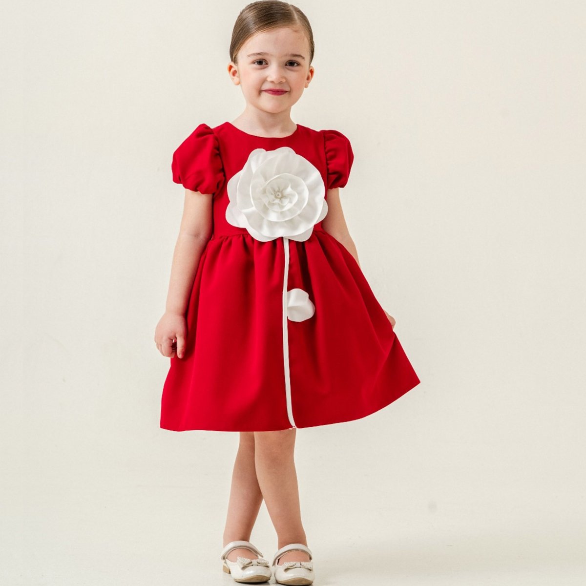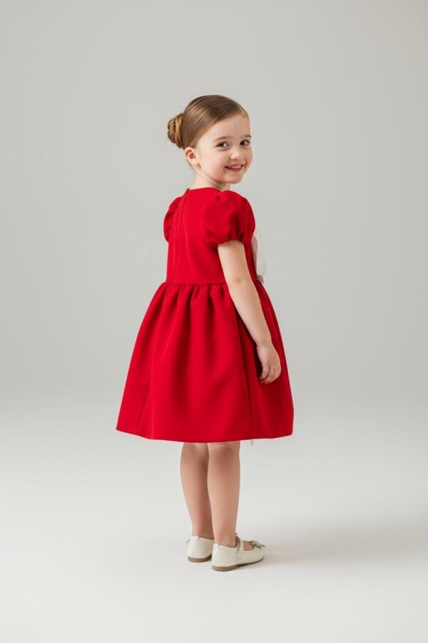 Φόρεμα Κόκκινο με Μεγάλο Σατέν Λουλούδι με Βαμβακερή Άνεση