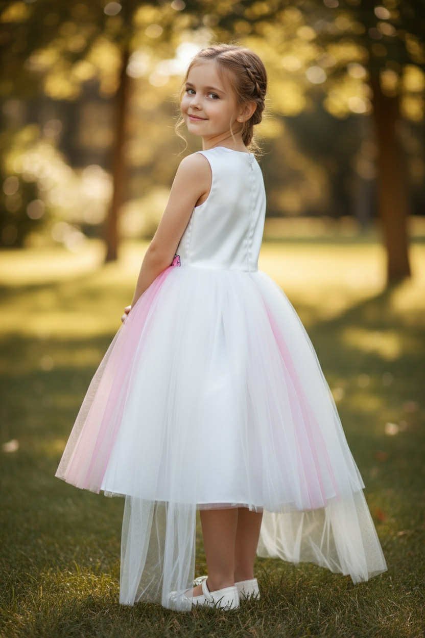 Ο συνδυασμός ροζ και λευκού δημιουργεί μια ρομαντική και γιορτινή εμφάνιση.