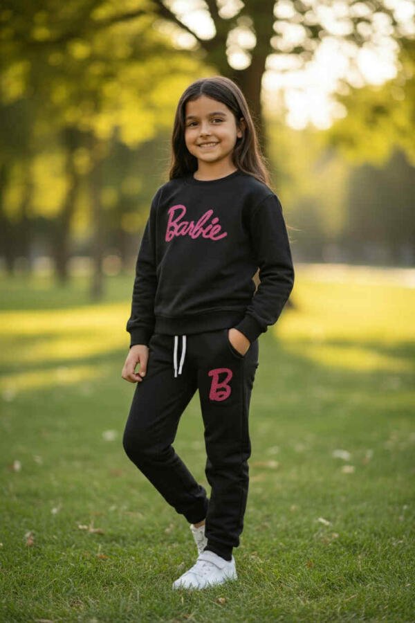 Η φόρμα Barbie για κορίτσια με ανάγλυφο κέντημα προσφέρει άνεση και κομψότητα.