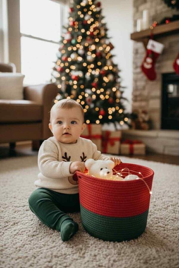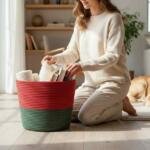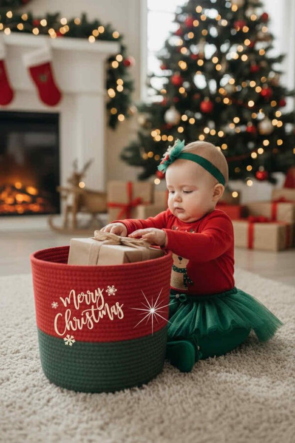 Χριστουγεννιάτικο Χειροποίητο Καλάθι Αποθήκευσης από Βαμβακερό Νήμα