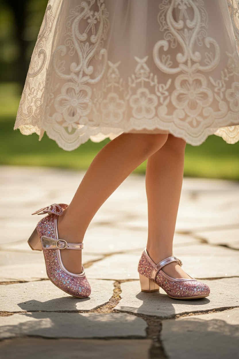 Λαμπερά παιδικά παπούτσια με σπινθηροβόλο γκλίτερ και πολύχρωμες παγιέτες, ιδανικά για μικρές πριγκίπισσες.