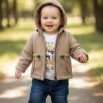 Μάλλινο παλτό με κουκούλα χωρίς φόδρα και λάστιχο στη μέση, παντελόνι και μακρυμάνικο μπλουζάκι, ένα ιδανικό σύνολο για το φθινόπωρο και τον χειμώνα.