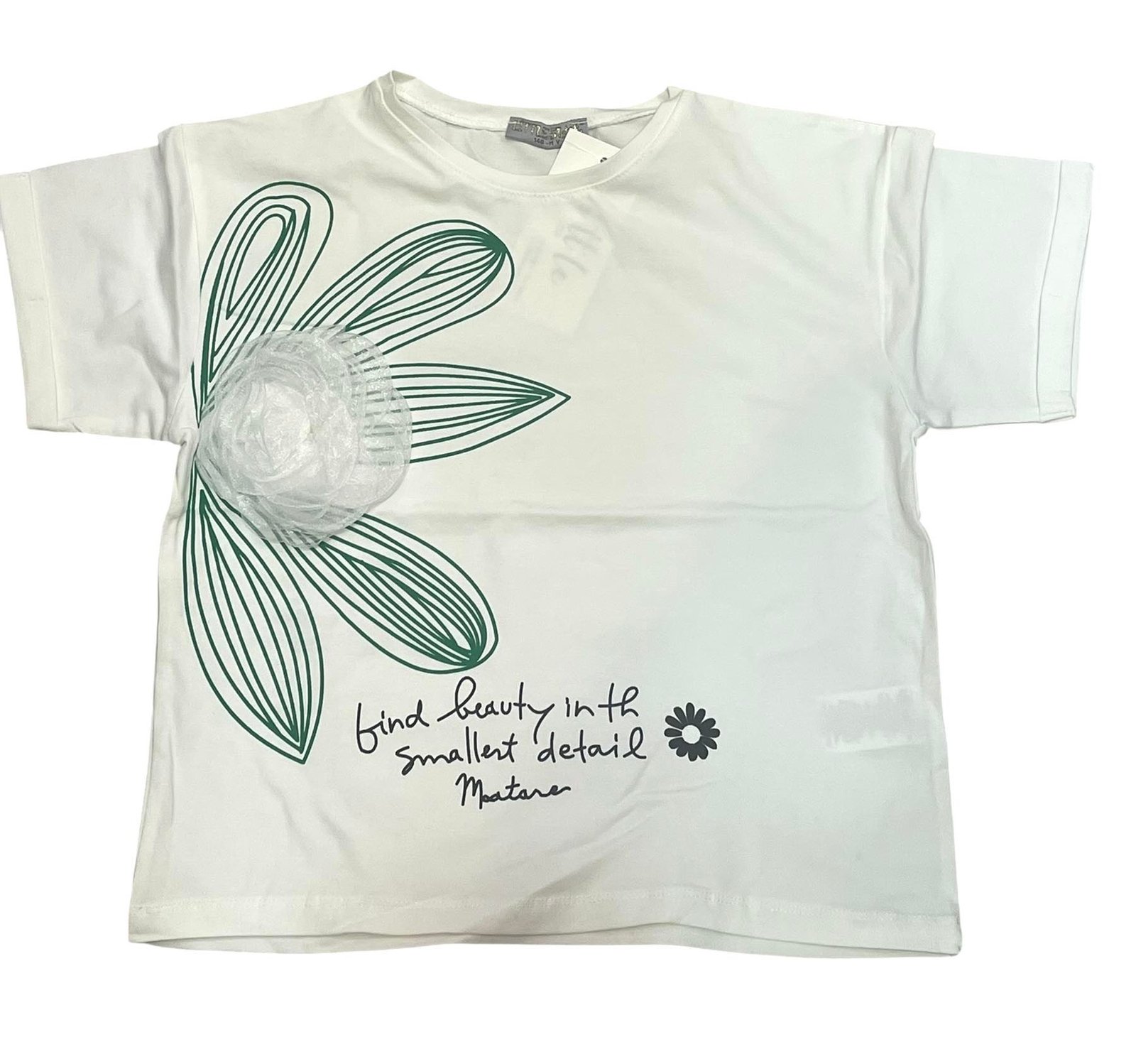 Καλοκαιρινή crop μπλούζα από 100% βαμβακερό ζέρσεϊ ύφασμα. Στη δεξιά πλευρά διαθέτει διακοσμητικό τριαντάφυλλο από τούλι, διαστάσεων 10 εκ. Κατάλληλη για κλασικό και σπορ ντύσιμο. Limited Edition.