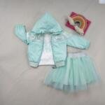 Το προϊόν αποτελείται από 3 κομμάτια. Μακρυμάνικη μπλούζα από 100% βαμβάκι, τούλινη φούστα και αδιάβροχο με παγιέτες που έχει ένα μικρό σχέδιο φτερών αγγέλου στην πλάτη. Μπορεί να φορεθεί όλες τις εποχές. Χάρη στις τούλινες λεπτομέρειες, είναι κατάλληλο τόσο για καθημερινή χρήση όσο και για ειδικές περιστάσεις.