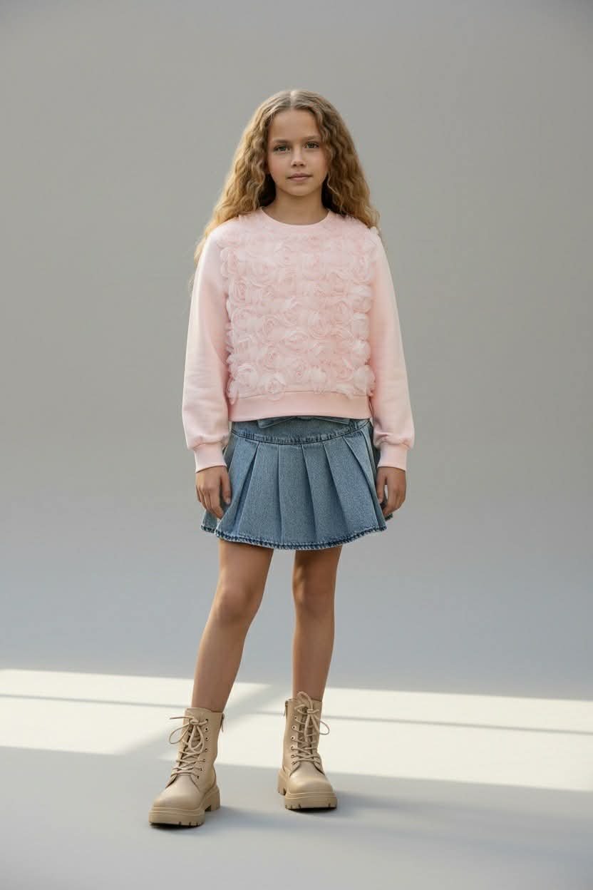 Little Star 100% βαμβακερή, ελαστική φούτερ–με 3D δαντελένιο λουλούδι Pink