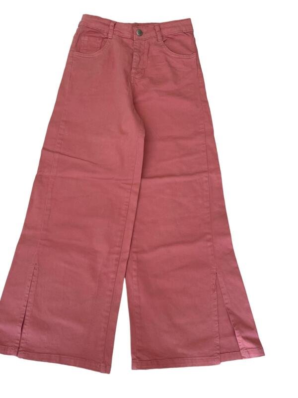 Παντελόνι από λινό και τζιν ύφασμα με καμπάνα στα μπατζάκια. Στο μέρος της μέσης υπάρχει λάστιχο και κουμπί για να σφίγγει και να χαλαρώνει.Στο μπροστινό μέρος των φαρδιών ποδιών υπάρχουν δύο κοντά σκισίματα.