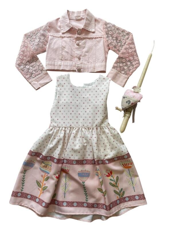 Lullaby Ροζ Αμάνικο Φόρεμα Τζιν Μπουφάν με Δαντέλα στα Μανίκια με Πασχαλινή Λαμπάδα