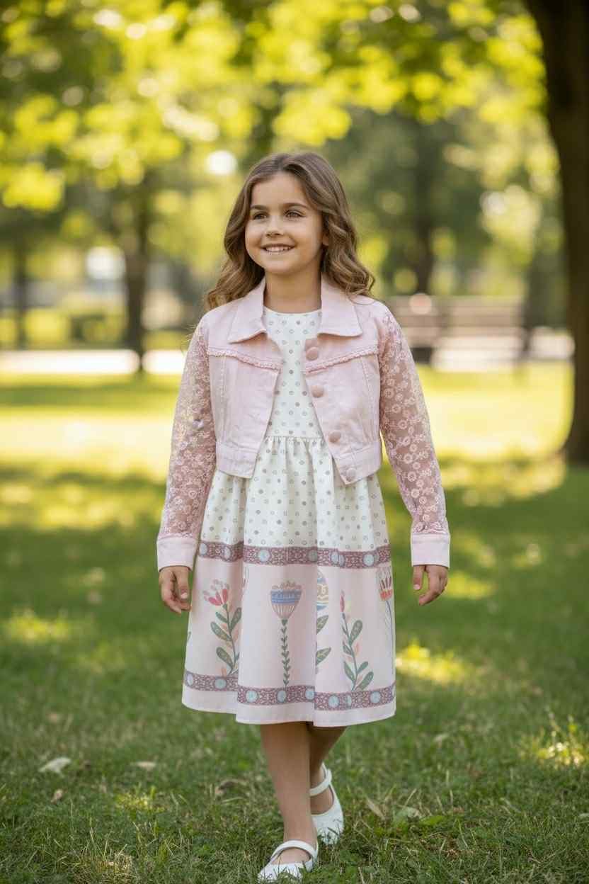 Lullaby Ροζ Αμάνικο Φόρεμα Τζιν Μπουφάν με Δαντέλα στα Μανίκια με Πασχαλινή Λαμπάδα