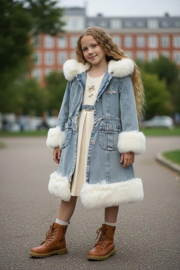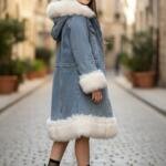 Τζιν Παλτό με Γούνινες Λεπτομέρειες