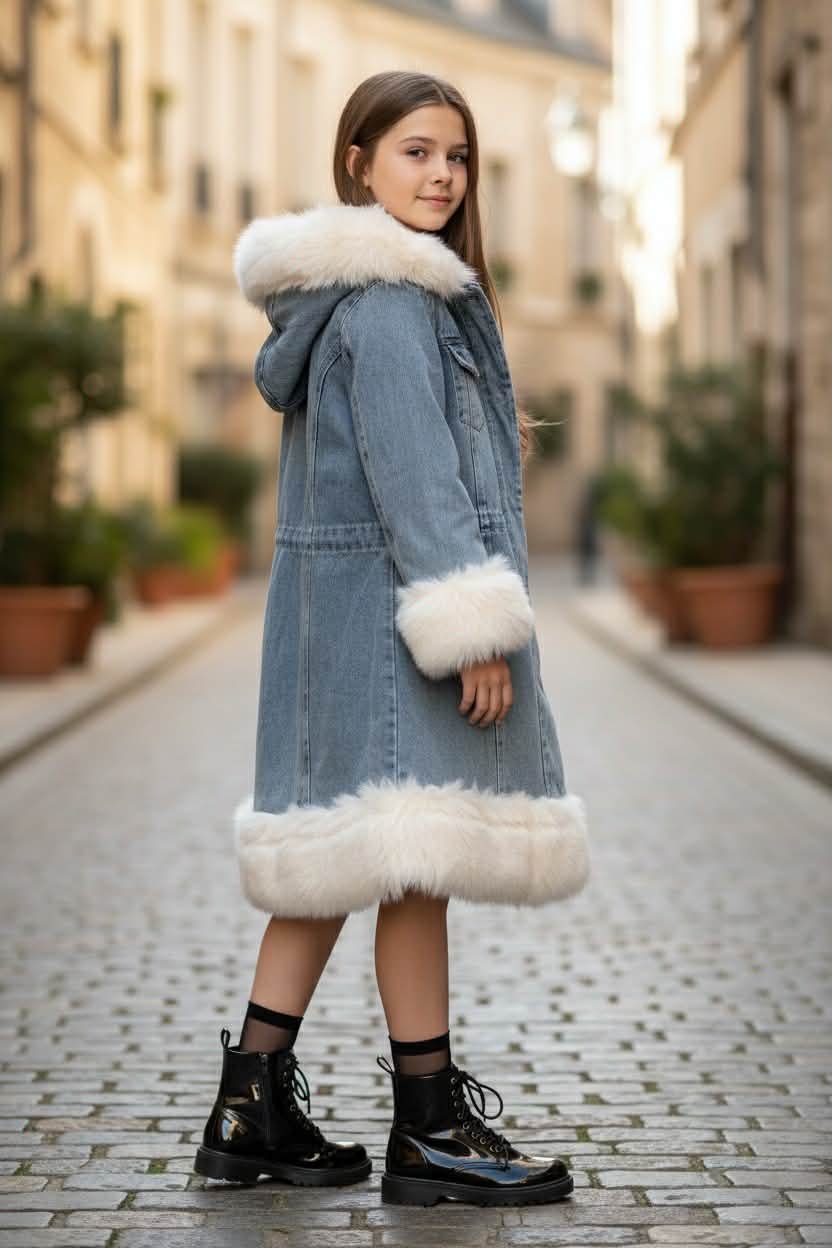 Τζιν Παλτό με Γούνινες Λεπτομέρειες