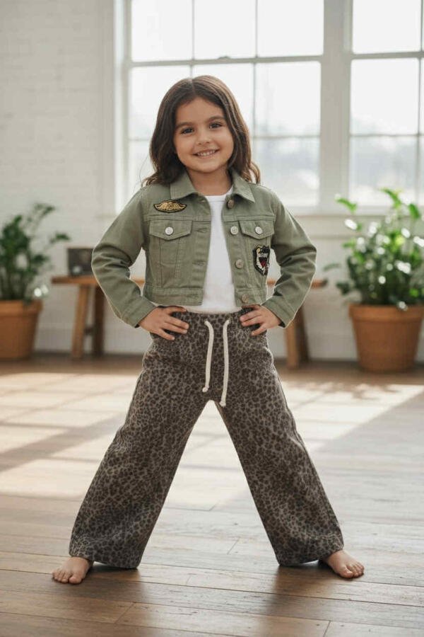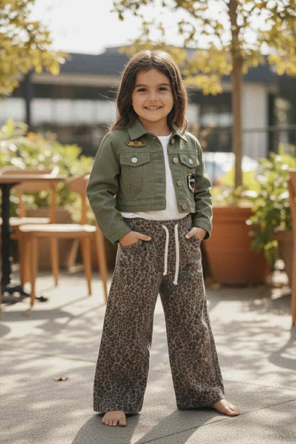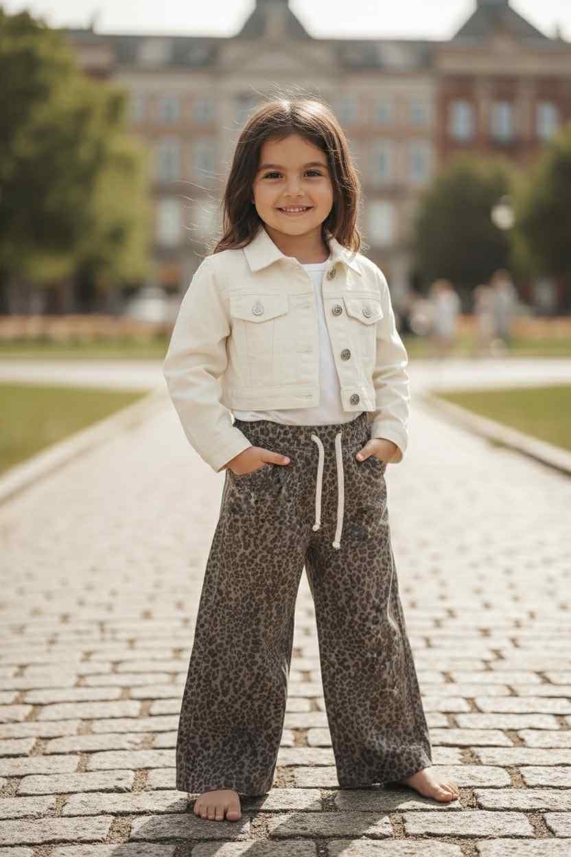 Το παντελόνι είναι κατασκευασμένο από βαμβακερό τζιν ύφασμα με λεοπάρ σχέδιο, με λάστιχο και κορδόνι στη μέση και άνετη γραμμή. Κατάλληλο για όλες τις εποχές.