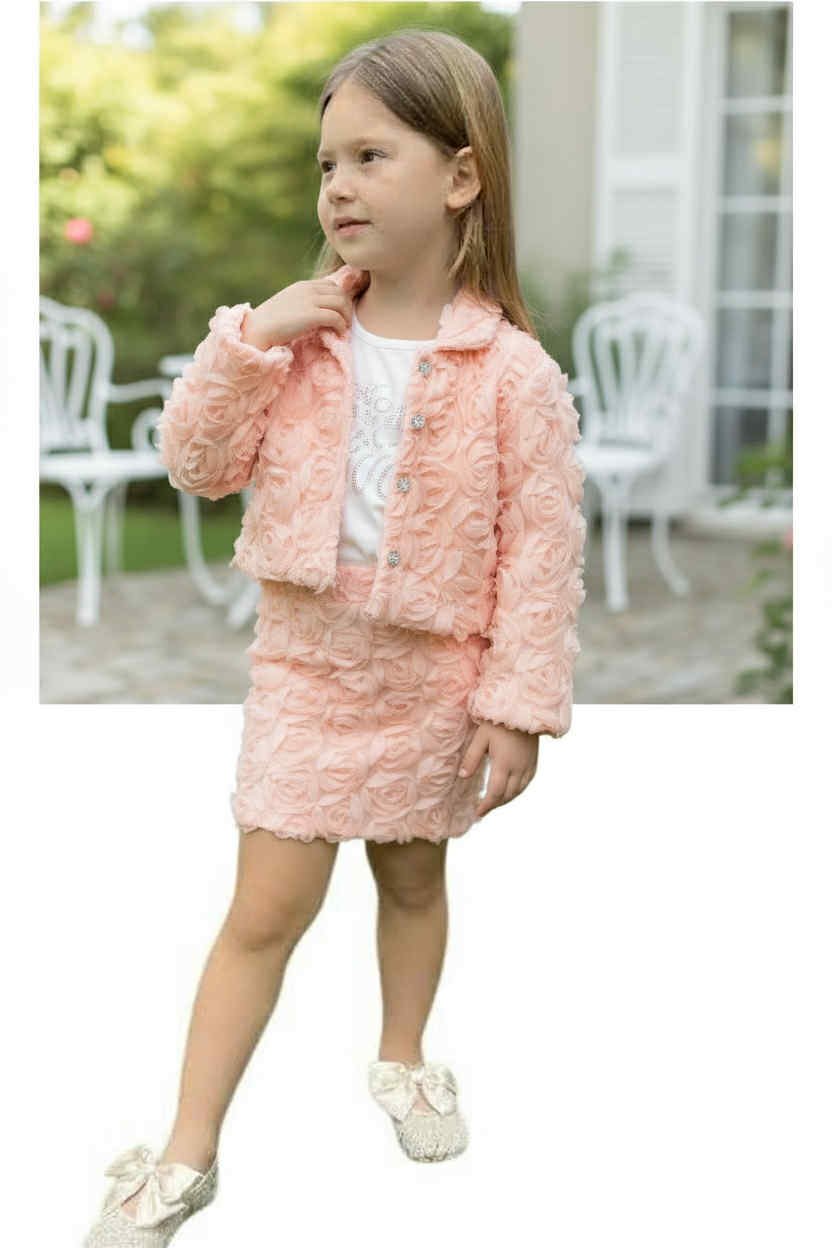 Το Rosella Bloom Set είναι ένα εντυπωσιακό και κομψό σετ για μικρές κυρίες που αγαπούν την elegant εμφάνιση. Ραμμένο από πολυτελές 3D flower lace fabric, το σετ προσφέρει μια μοναδική υφή με ανάγλυφα λουλούδια που ξεχωρίζουν σε κάθε περίσταση.