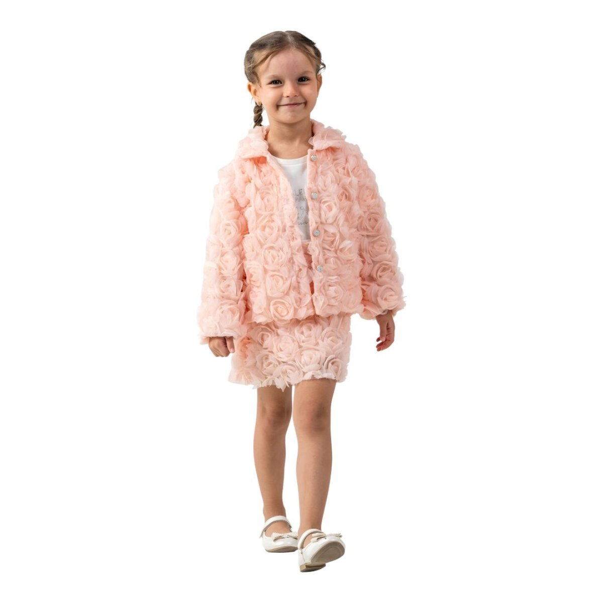 Rosella Lace Bloom Set – Σετ Κοριτσιού με 3D Ανάγλυφα Λουλούδια ροζ πούδρας