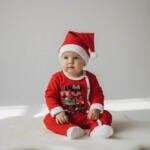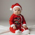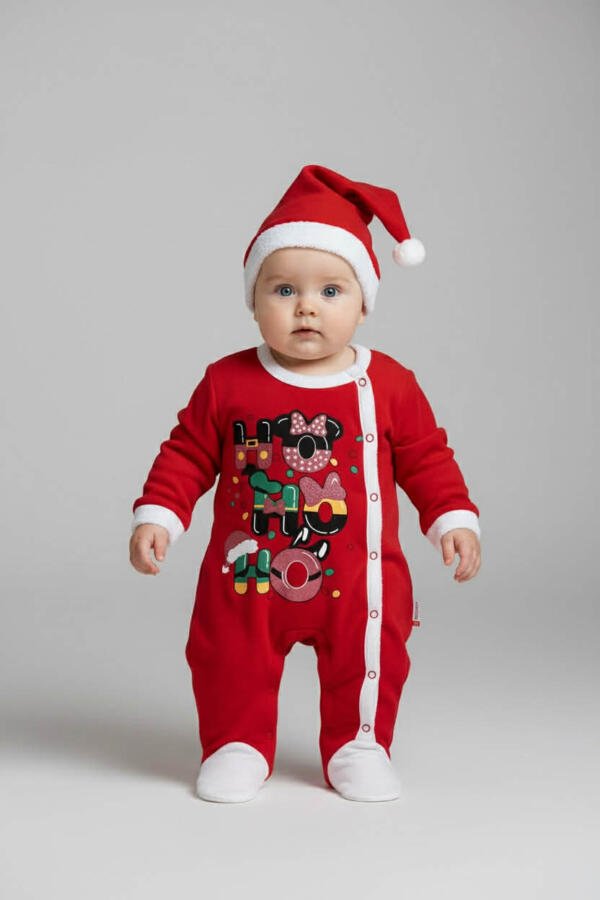 Απαλή και άνετη χριστουγεννιάτικη ολόσωμη φόρμα για μωρά, κατασκευασμένη από 100% βαμβάκι, ιδανική για ευαίσθητες επιδερμίδες. Διαθέτει κόκκινο χρώμα, λευκές λεπτομέρειες και χαριτωμένο χριστουγεννιάτικο σχέδιο στο μπροστινό μέρος.