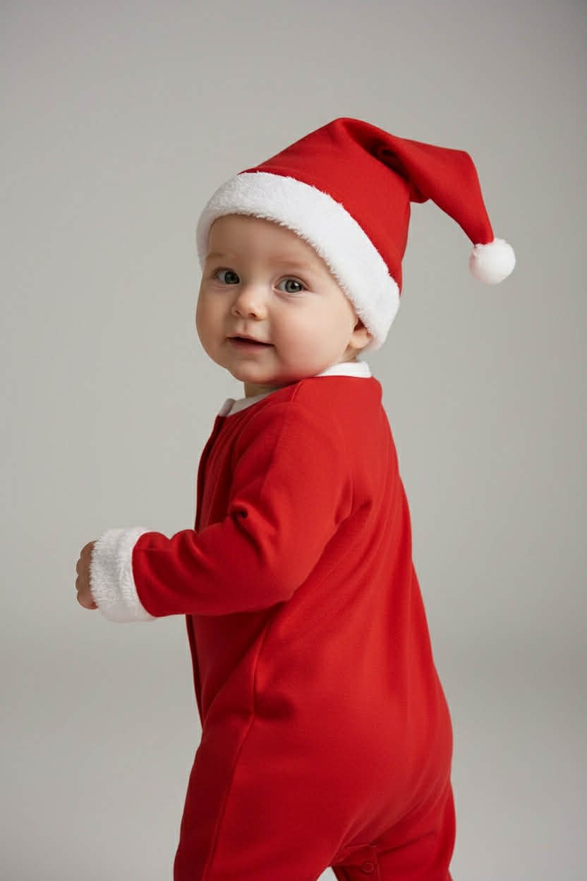 Απαλή και άνετη χριστουγεννιάτικη ολόσωμη φόρμα για μωρά, κατασκευασμένη από 100% βαμβάκι, ιδανική για ευαίσθητες επιδερμίδες. Διαθέτει κόκκινο χρώμα, λευκές λεπτομέρειες και χαριτωμένο χριστουγεννιάτικο σχέδιο στο μπροστινό μέρος.