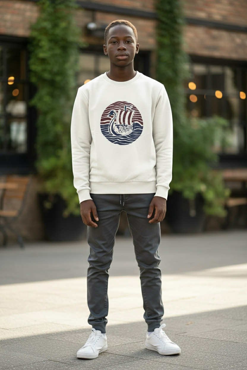 Το Viking Sweatshirt ξεχωρίζει με τη στάμπα βάρκας Viking στο μπροστινό μέρος.