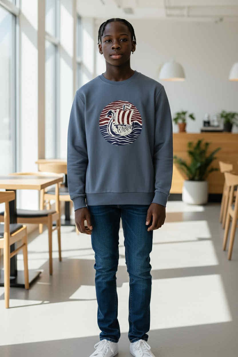 Το Viking Sweatshirt ξεχωρίζει με τη στάμπα βάρκας Viking στο μπροστινό μέρος.