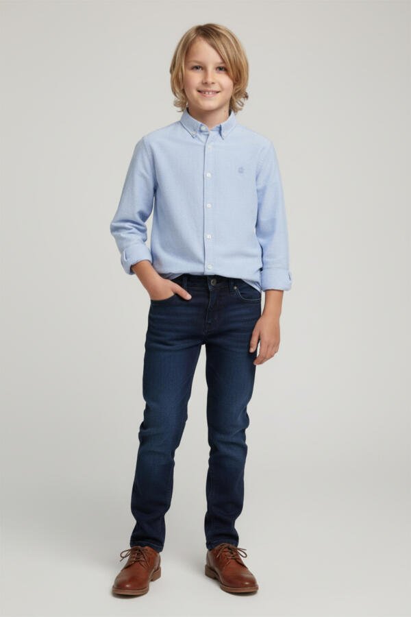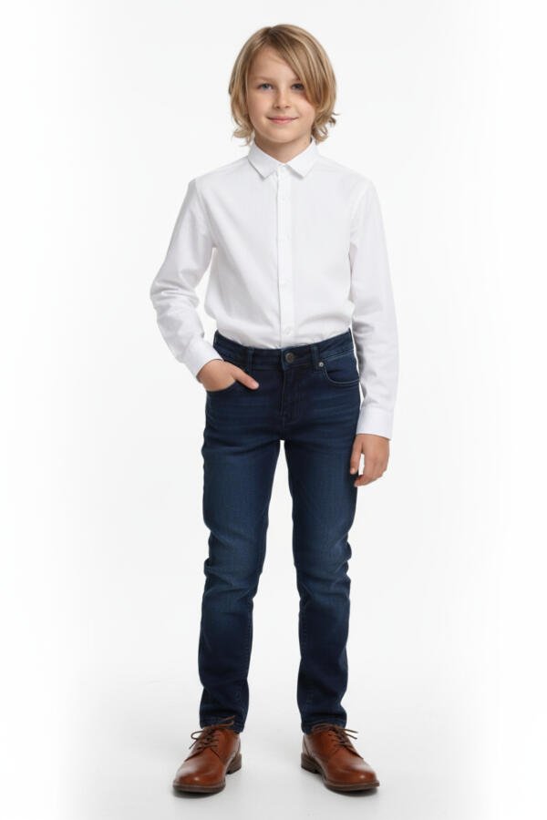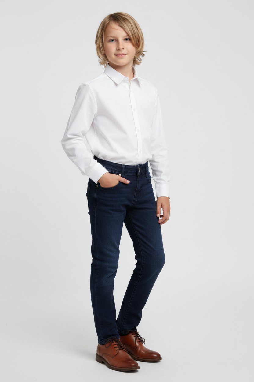 Κλασικό αγορίστικο παντελόνι σε σκούρο μπλε χρώμα, ιδανικό για όλο τον χρόνο. Διαθέτει ρυθμιζόμενη μέση με εσωτερικά κουμπιά για τέλεια εφαρμογή.