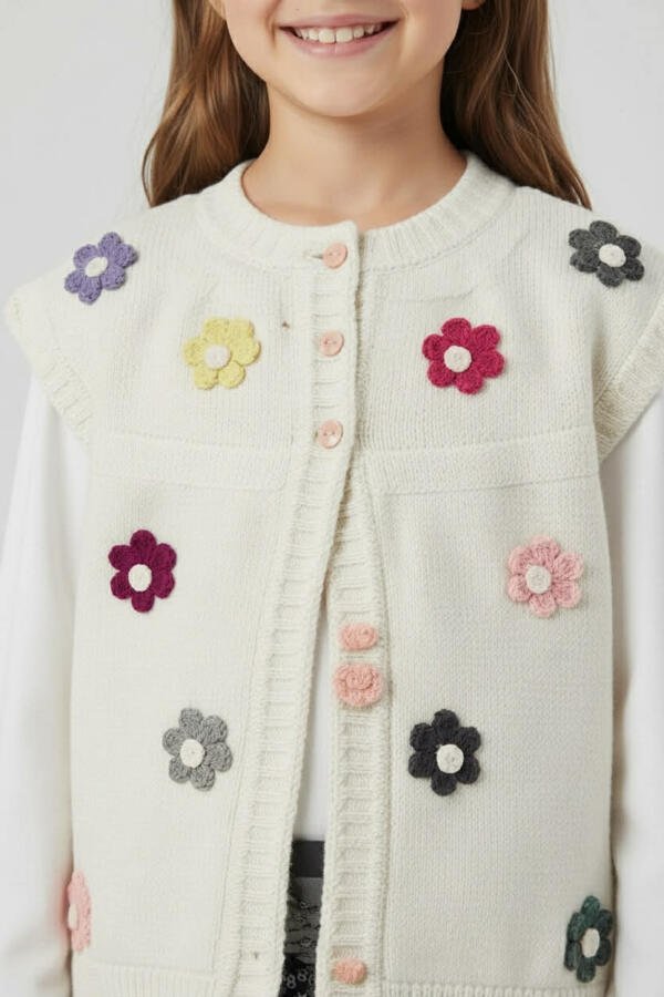Πλεκτό Γιλέκο Κοριτσιού με Τσόχινα Λουλούδια