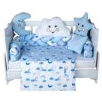 WB Σετ Σετ Κούνιας Σύννεφο και Φεγγάρι σε Μπλε – με Πλεξούδα Προστασίας