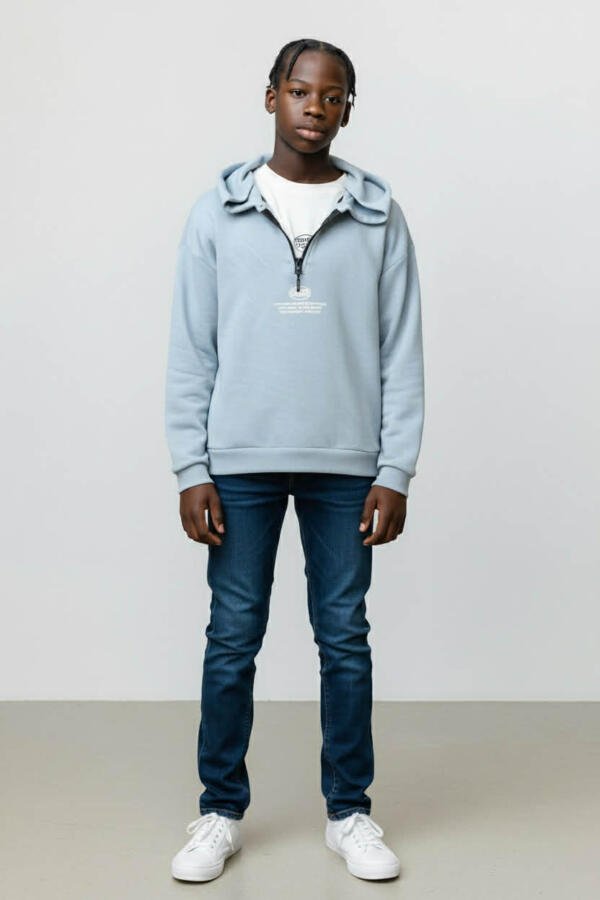 Σετ 2 τεμαχίων για αγόρι, ιδανικό για καθημερινή χρήση και sporty εμφανίσεις. Περιλαμβάνει φούτερ με κουκούλα από 100% βαμβάκι, με απαλή υφή και άνετη εφαρμογή, καθώς και μακρυμάνικη μπλούζα από χοντρό πένιε για επιπλέον ζεστασιά. Φοριέται εύκολα με τζιν ή φόρμα και είναι εξαιρετική επιλογή για σχολείο, βόλτες και δραστηριότητες.