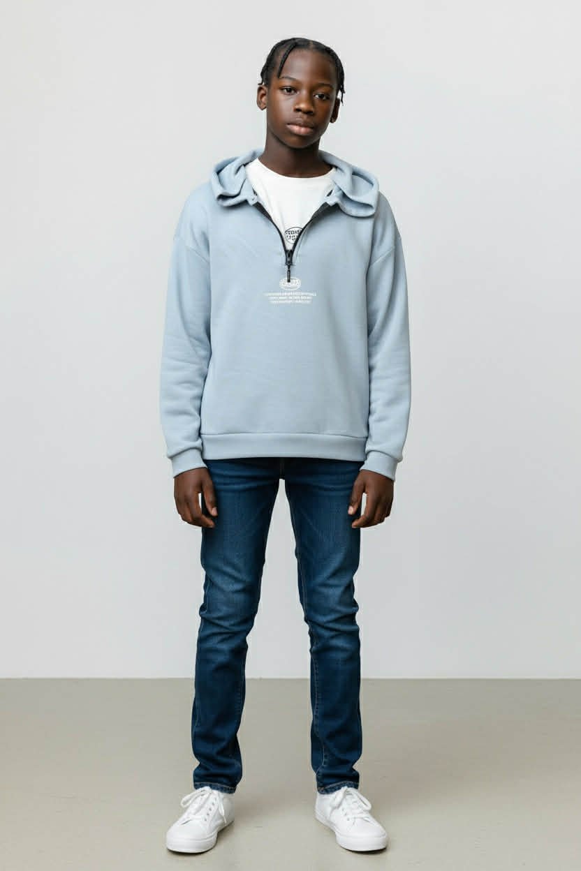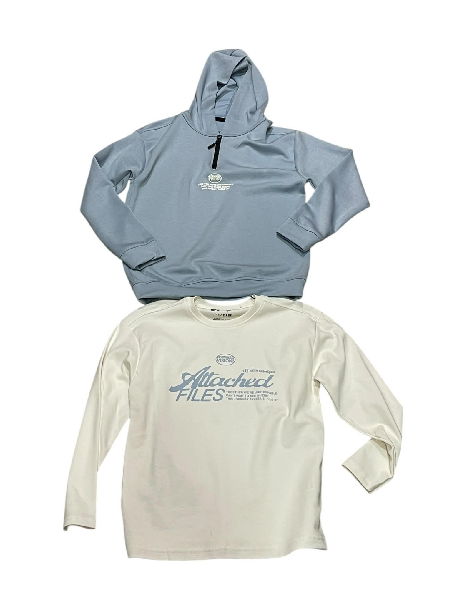 Σετ 2 τεμαχίων για αγόρι, ιδανικό για καθημερινή χρήση και sporty εμφανίσεις. Περιλαμβάνει φούτερ με κουκούλα από 100% βαμβάκι, με απαλή υφή και άνετη εφαρμογή, καθώς και μακρυμάνικη μπλούζα από χοντρό πένιε για επιπλέον ζεστασιά. Φοριέται εύκολα με τζιν ή φόρμα και είναι εξαιρετική επιλογή για σχολείο, βόλτες και δραστηριότητες.