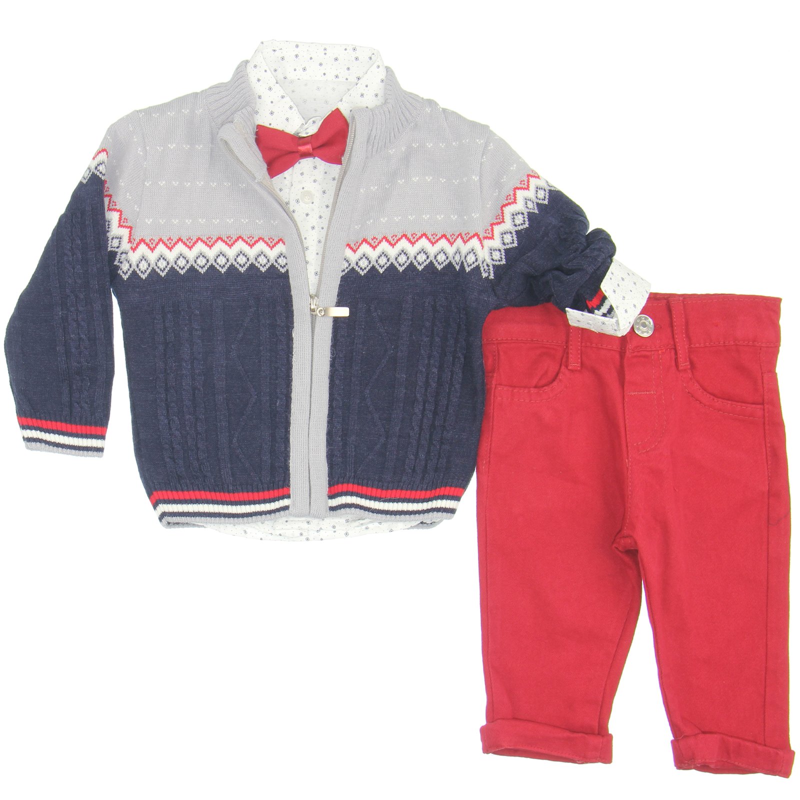 WB Σετ 3 τεμαχίων με πλεκτή ζακέτα για αγοράκι.