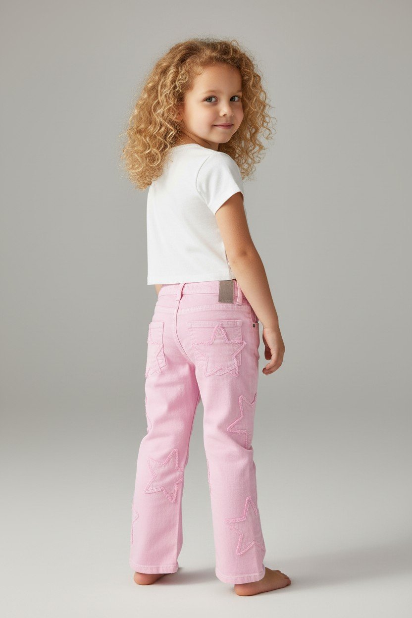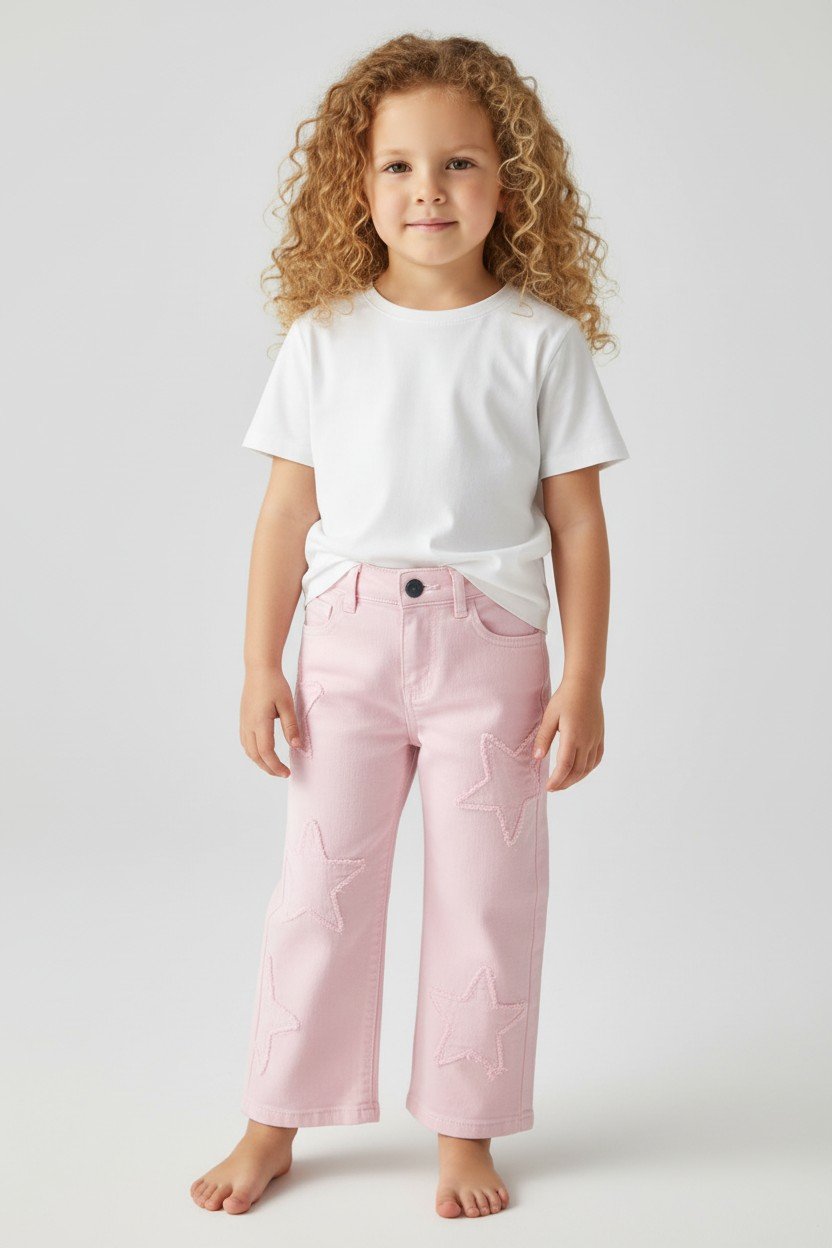 Μοντέρνο και άνετο παιδικό τζιν παντελόνι για κορίτσια, σχεδιασμένο για καθημερινή χρήση. Κατασκευασμένο από βαμβακερό denim ύφασμα υψηλής ποιότητας που προσφέρει αντοχή, άνεση και φυσική διαπνοή. Το διακοσμητικό κέντημα με αστέρια προσθέτει μια ιδιαίτερη και παιχνιδιάρικη αισθητική στο σχέδιο, καθιστώντας το ιδανικό για casual αλλά και πιο κομψούς συνδυασμούς.