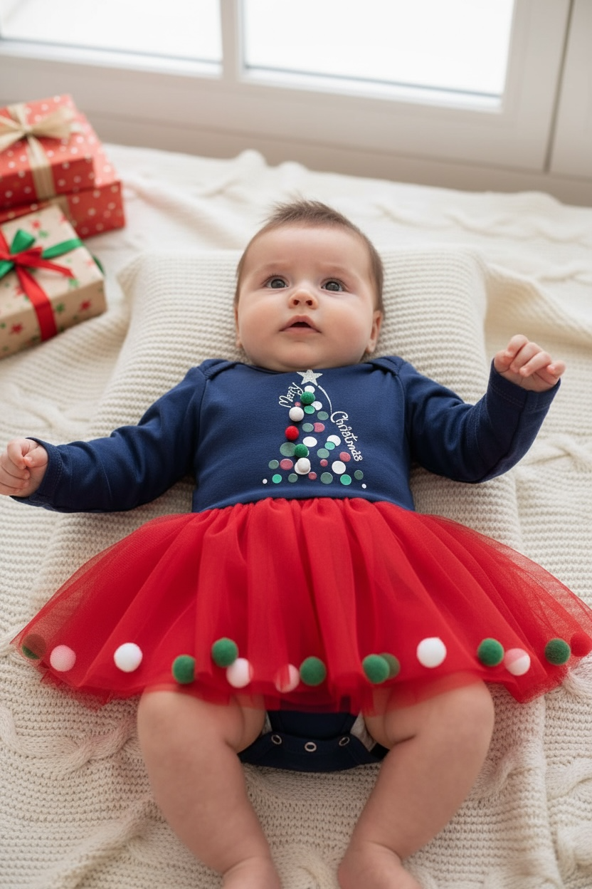 Φόρεμα για κοριτσάκι: το πάνω μέρος είναι από μαλακό βαμβακερό ύφασμα, το κάτω μέρος αποτελείται από δύο στρώσεις τούλι και από κάτω υπάρχει βαμβακερή φόδρα.Στην περιοχή της τούλινης φούστας υπάρχουν μάλλινα πομ-πομ