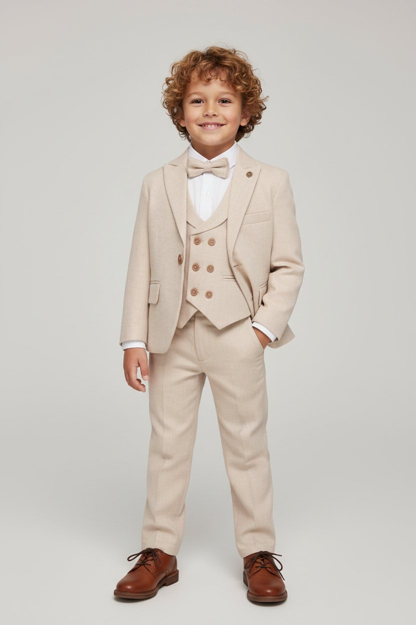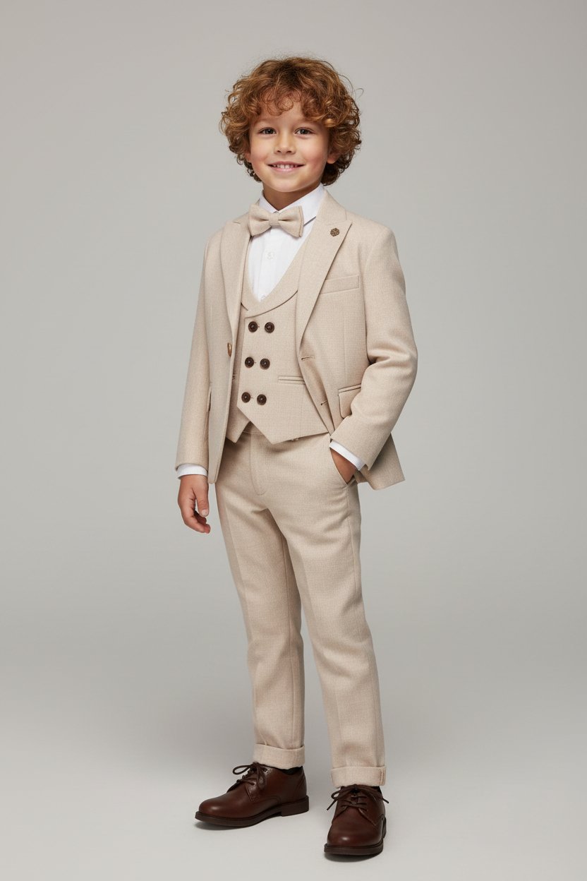 Elegant σετ κοστουμιού 5 τεμαχίων για αγόρι. Περιλαμβάνει σακάκι, γιλέκο, πουκάμισο, παντελόνι και παπιγιόν.
