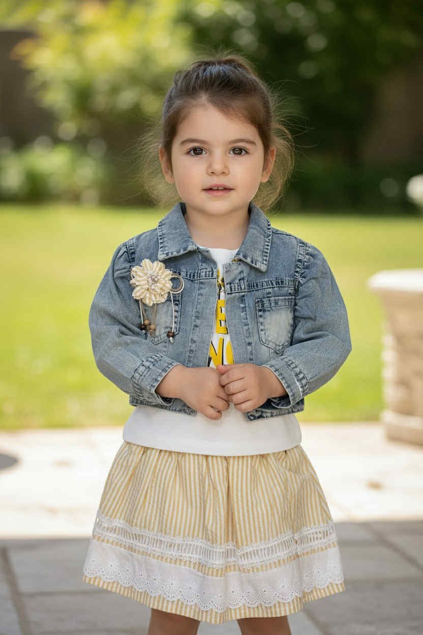 WB Dolly Jean Jacket, Βαμβακερό Λινό Ballon Φούστα ,Μπλούζα, Κίτρινο