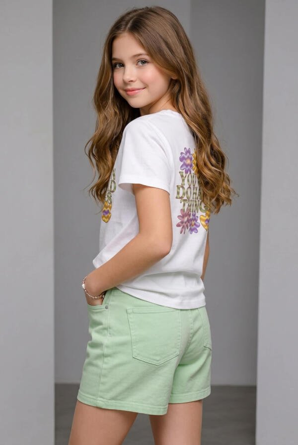 Παιδικό Σορτς Κοριτσιού Πράσινο (φιστικί) – Λεπτό denim/λινό
