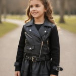 Σετ δύο τεμαχίων από συνθετικό δέρμα με crop τζάκετ και φούστα.