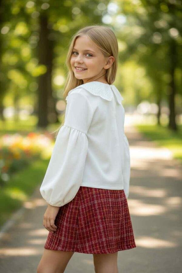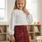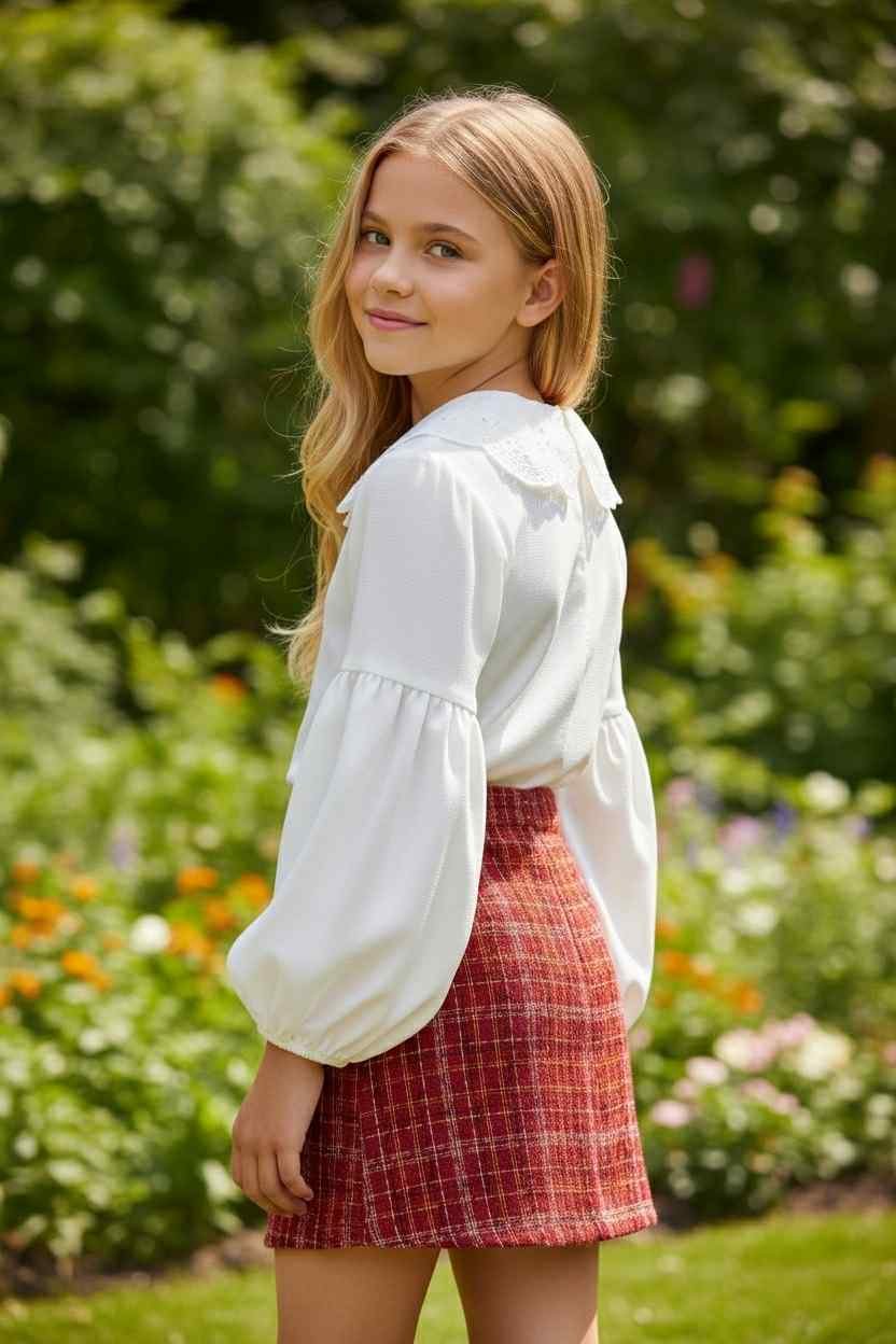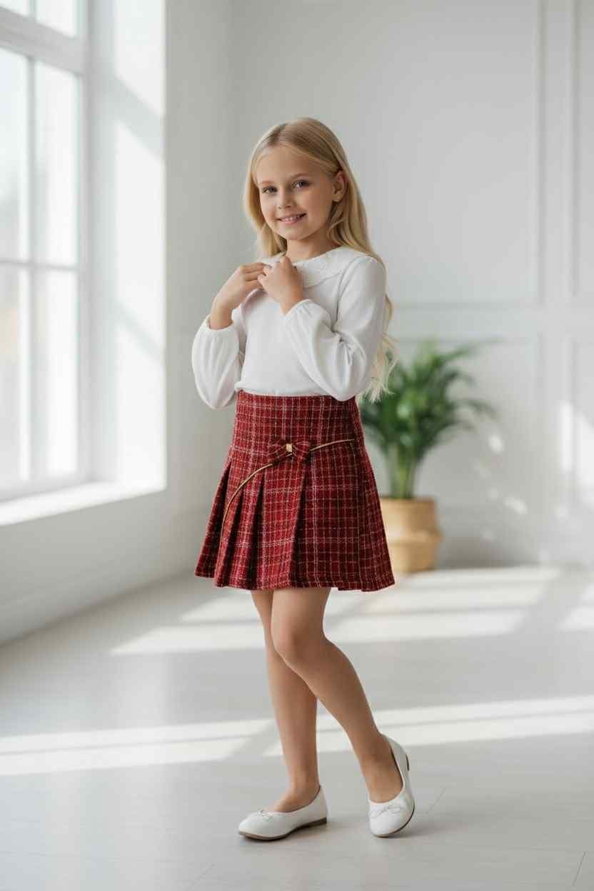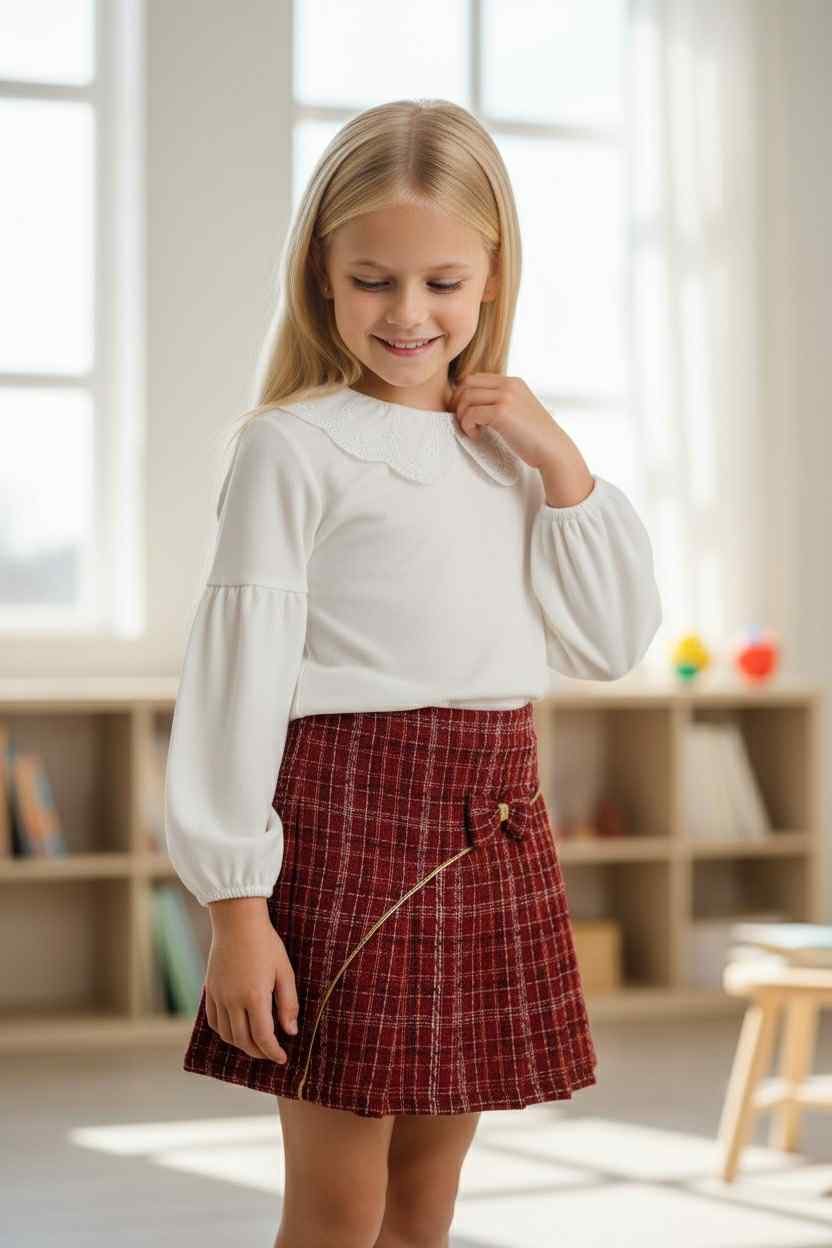 WB Suplin πουκάμισο και καρό μάλλινη φούστα σετ