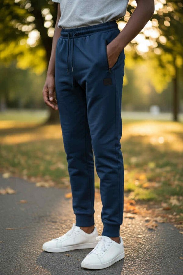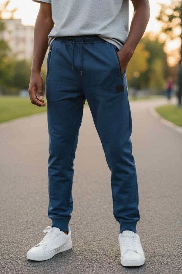 ZipFlex Jogger – Μπλε φούτερ παντελόνι με φερμουάρ και κορδόνι